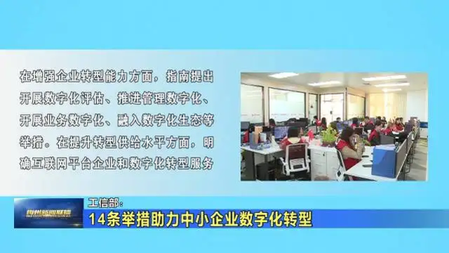 工業(yè)和信息化部近日印發(fā)《中小企業(yè)數(shù)字化轉(zhuǎn)型指南》,面向中小企業(yè)、數(shù)字化轉(zhuǎn)型服務(wù)供給方和地方各級主管部門,從增強(qiáng)企業(yè)轉(zhuǎn)型能力、提升轉(zhuǎn)型供給水平、加大轉(zhuǎn)型政策支持等三方面提出了14條具體舉措,助力中小企業(yè)數(shù)字化轉(zhuǎn)型,提升為中小企業(yè)提供數(shù)字化產(chǎn)品和服務(wù)的能力。