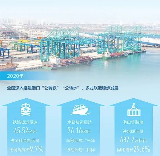 港口“公轉鐵”“公轉水”,是我國近年來運輸結構調(diào)整的一個縮影。2018年,我國啟動了《推進運輸結構調(diào)整三年行動計劃(2018—2020年)》,深入實施鐵路運能提升、水運系統(tǒng)升級等六大行動,以推進大宗貨物運輸“公轉鐵”“公轉水”為主攻方向,不斷完善綜合運輸網(wǎng)絡,減少公路運輸量,增加鐵路運輸量。