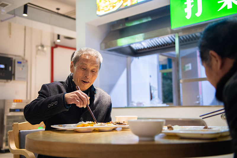 老人在湖南省常德市武陵區(qū)長者大食堂就餐(2021年11月16日攝)。新華社記者 陳思汗 攝